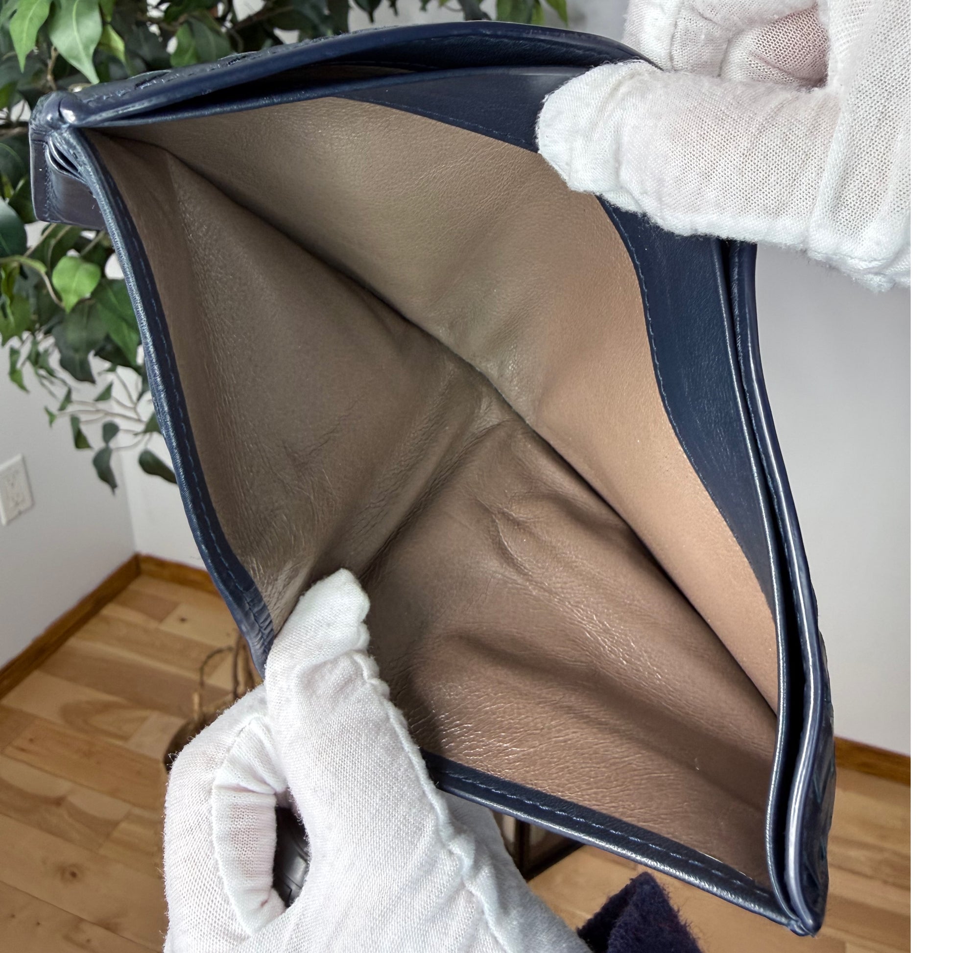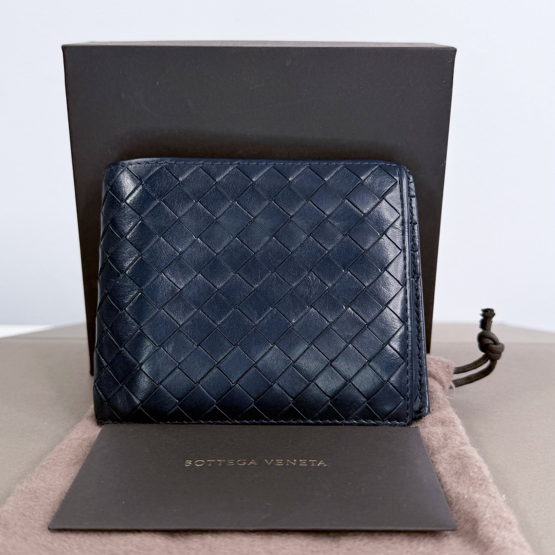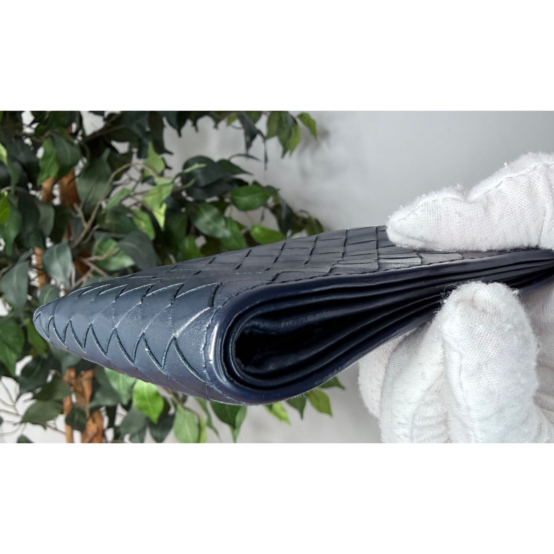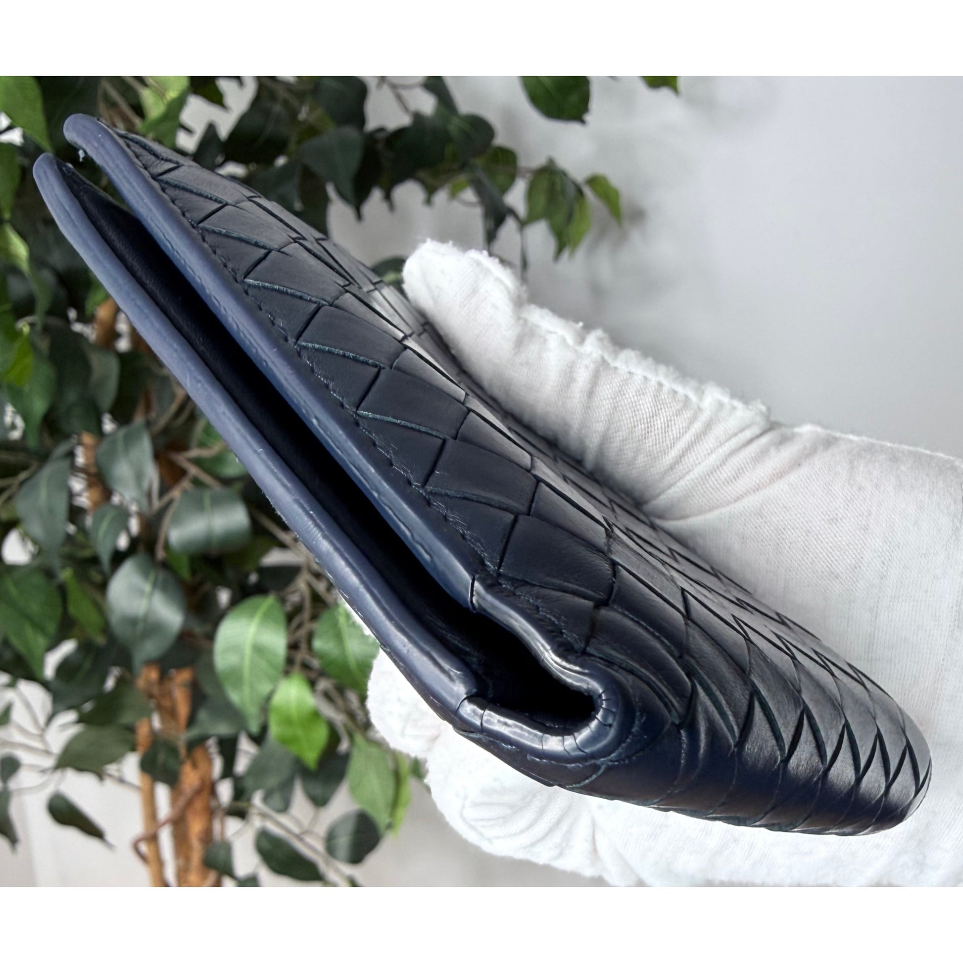 Bottega Veneta Intrecciato Wallet Bifold Leather Unisex Made in Italy Navy