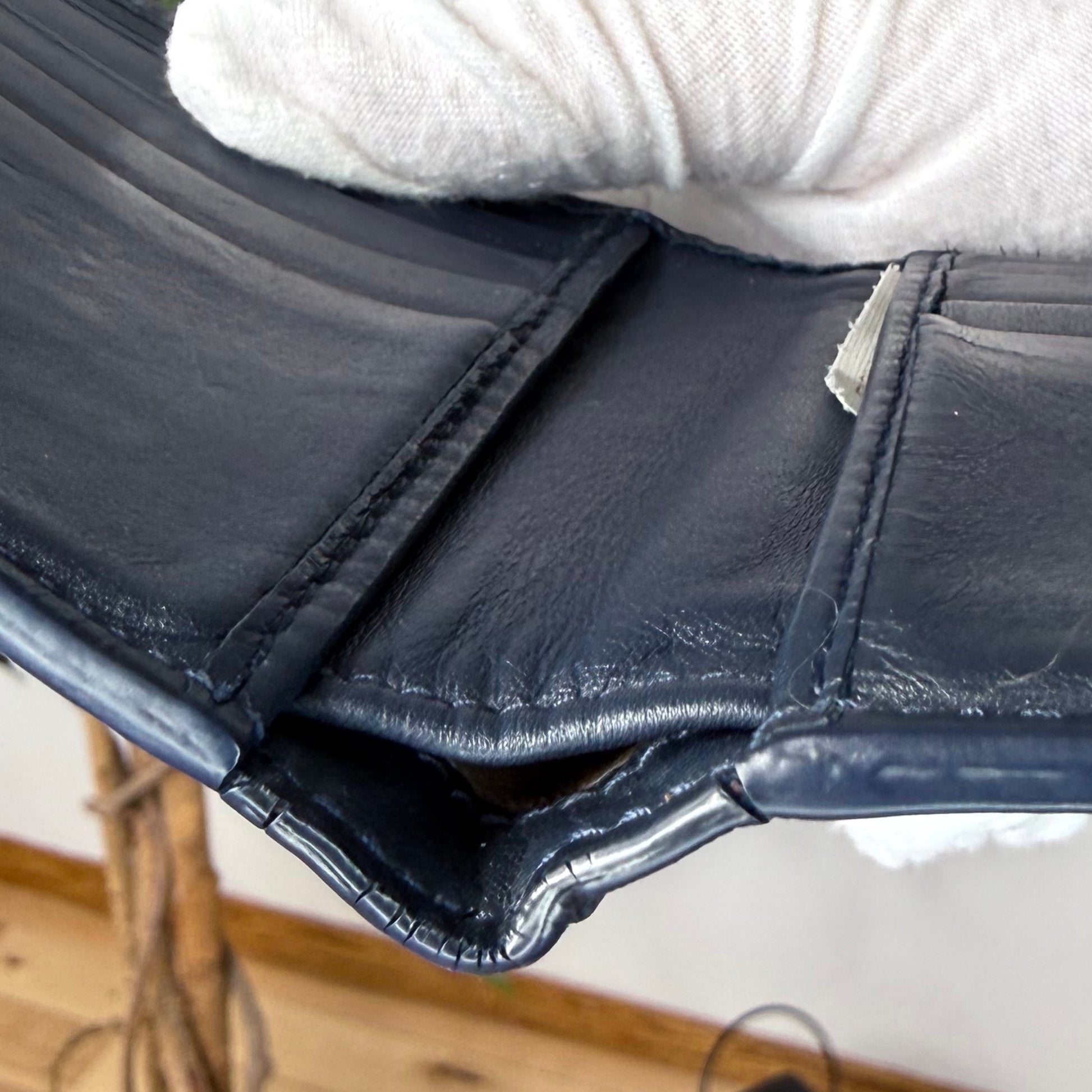 This classic bifold wallet is crafted from Bottega Veneta’s signature Intrecciato woven leather, a technique introduced in the 1970s and still produced by skilled Italian artisans today. Finished in an elegant navy tone, this wallet offers a refined alternative to logo-heavy designs, making it a staple for collectors and everyday luxury enthusiasts alike. Slim, functional, and timeless, it is a perfect example of Bottega Veneta’s quiet luxury heritage. Made in Italy.