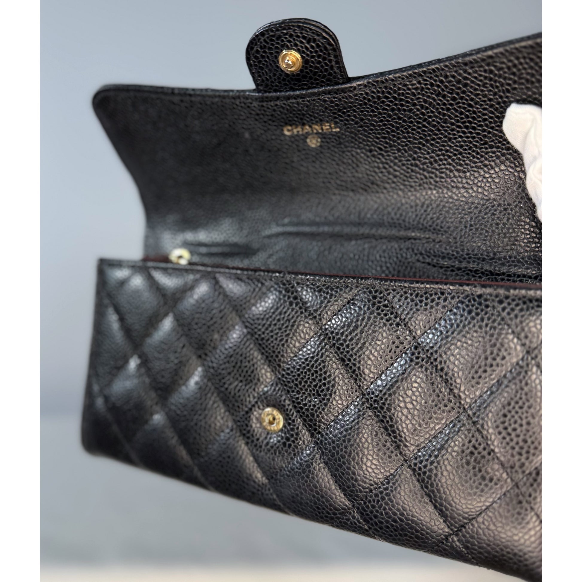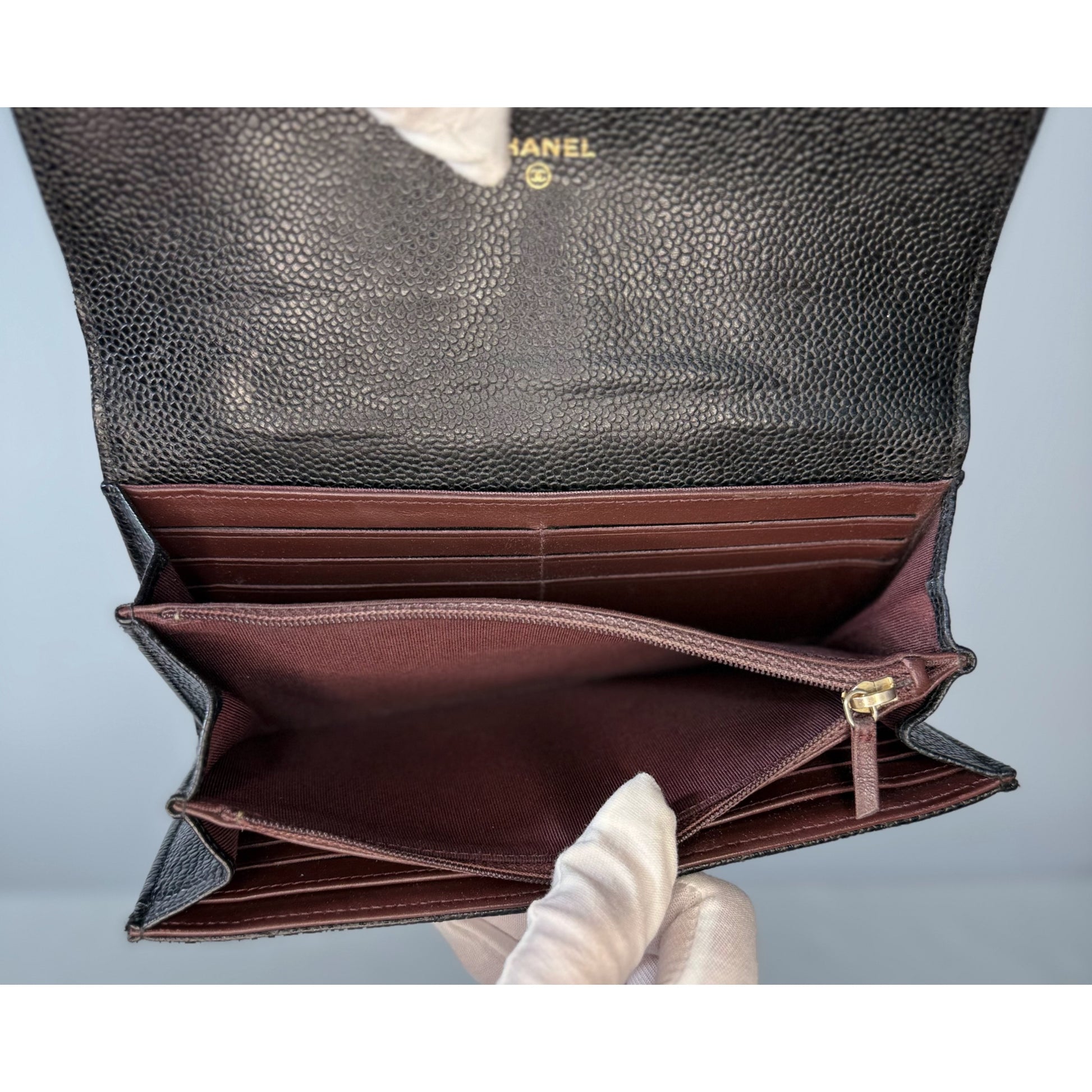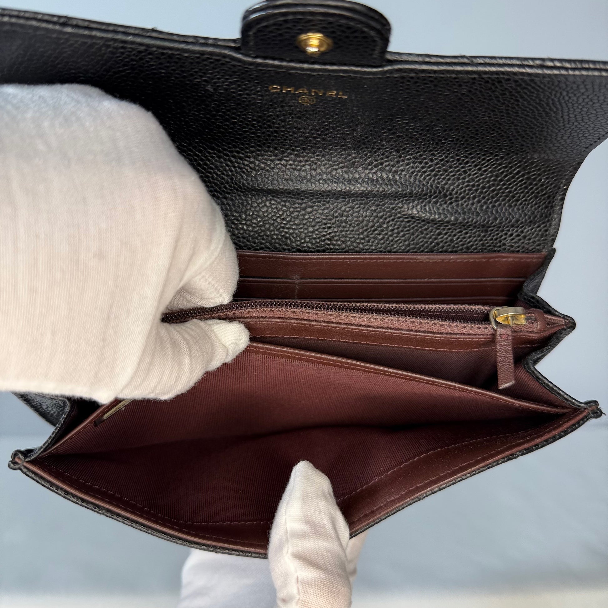 Chanel Classic Quilted Caviar Long Flap Wallet Gold CC Logo