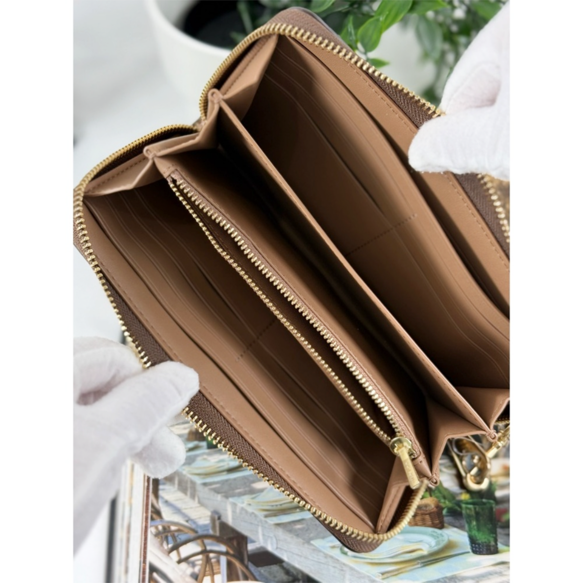 Authentic Coach x Peanuts CBM91 Long Zip Around Wallet in Signature Canvas Tan/Brown Multi with patches. Features 12 card slots, full-length bill compartments, inside zip coin pocket, detachable wrist strap, and secure zip-around closure. Rare 75th Anniversary Collection, limited edition.