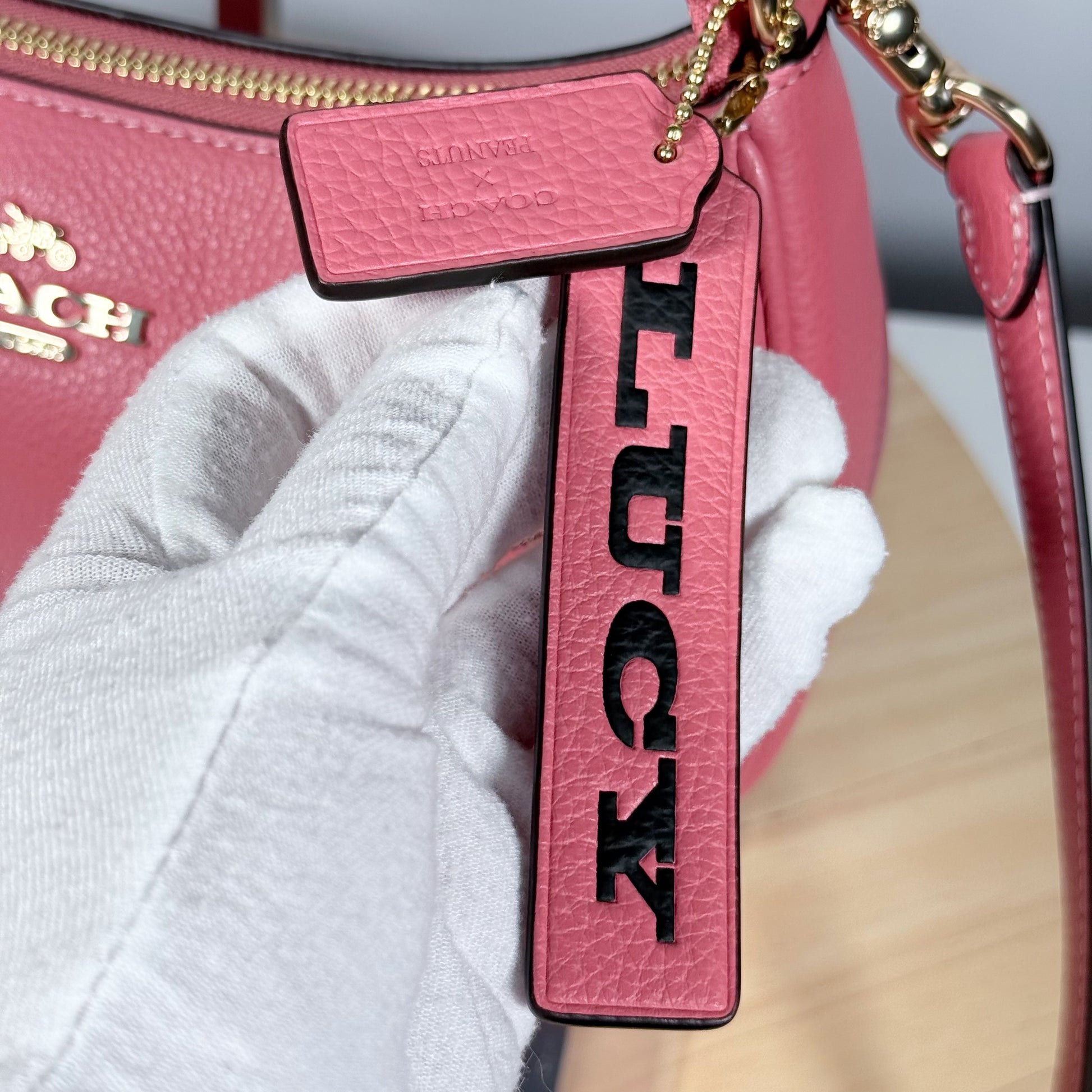 Coach X Peanuts Teri Shoulder Bag With Lucy CBM32 Leather/Bright Coral Multi NWT
