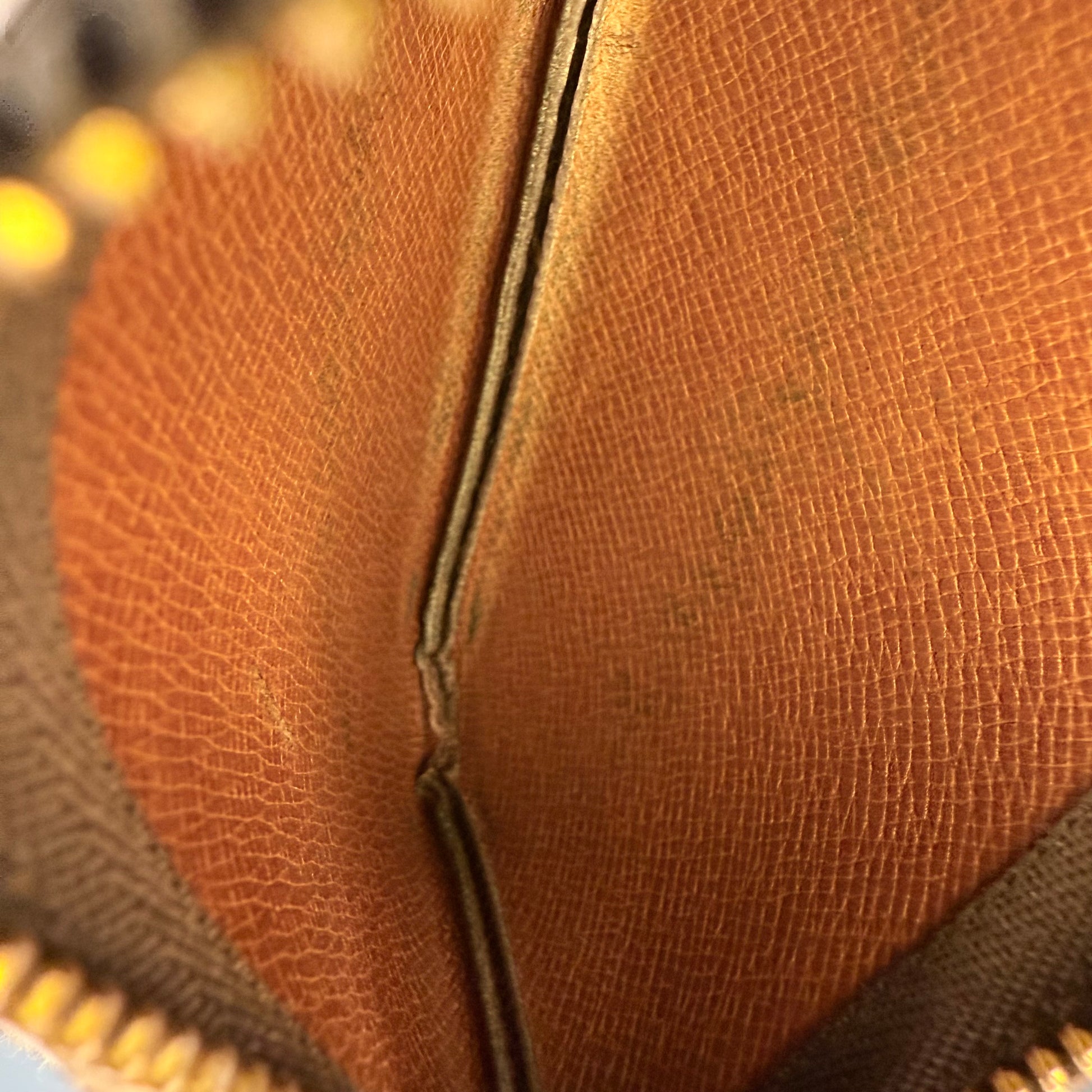 Authentic Louis Vuitton Monogram Key Pouch in brown coated canvas, vintage 1980s (Date Code 872). Features the iconic LV Monogram canvas, gold-tone zipper pull, and interior key chain with LV-engraved clasp. Classic brown cross-grain leather lining. Made in France. Verified authentic. Buy with confidence.