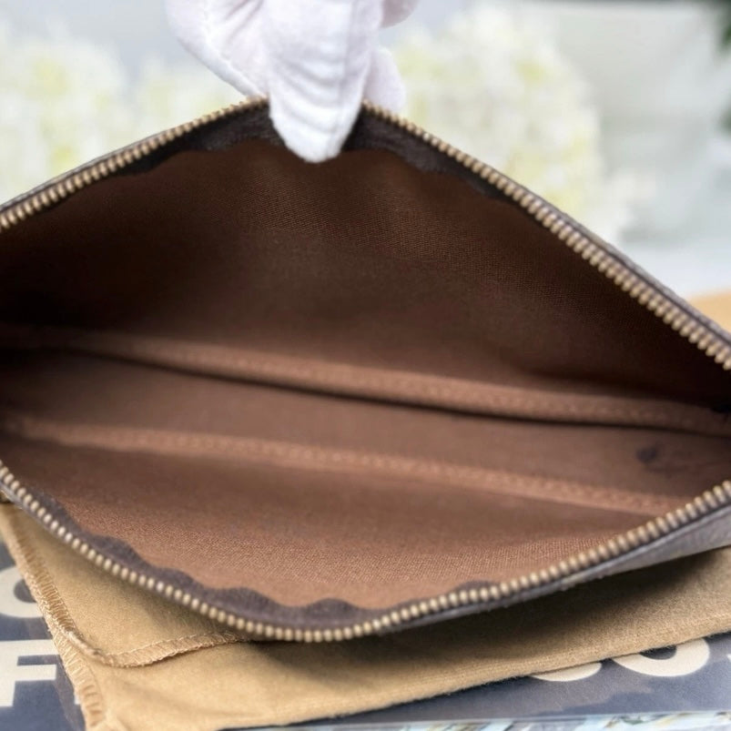 A rare find from the late 90s, this Vintage Louis Vuitton Pochette Accessoires captures the true essence of classic LV. Crafted in 1999 in France, it features the iconic Monogram canvas that defined an era of effortless Parisian chic. Vintage pieces from this era are coveted for their craftsmanship, proportions, and unmistakable Y2K charm.