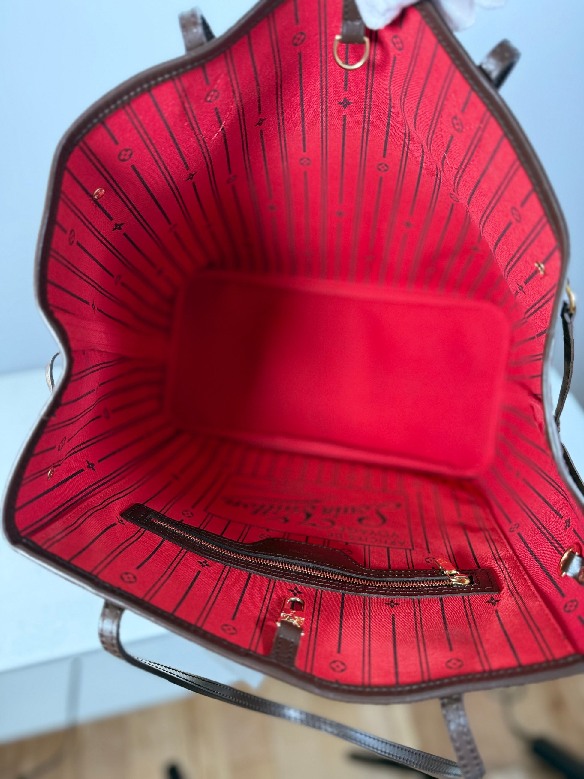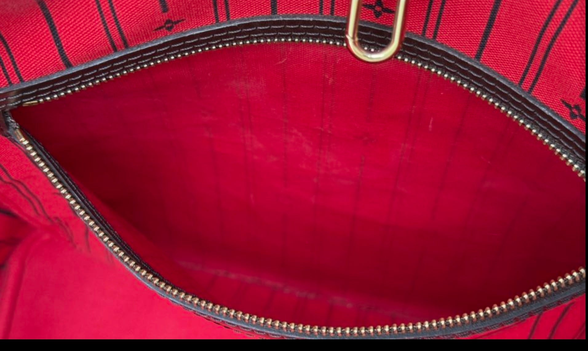 Louis Vuitton Neverfull MM Damier Ebene Canvas Cherry Red Lining Tote Bag