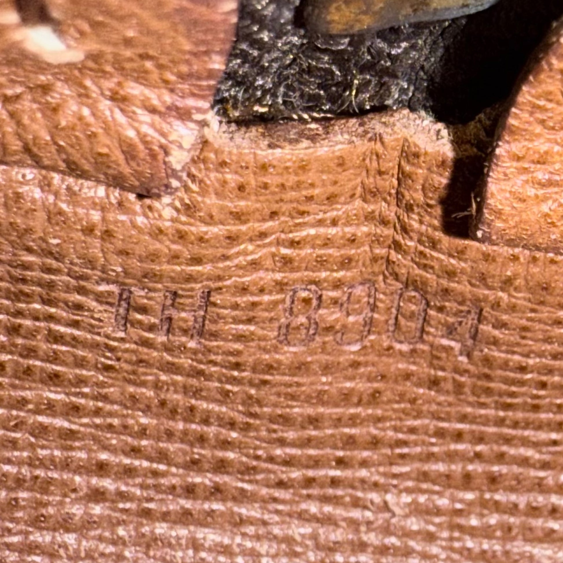 Hardware: Closure secure, hardware shows wear/tarnish consistent with age