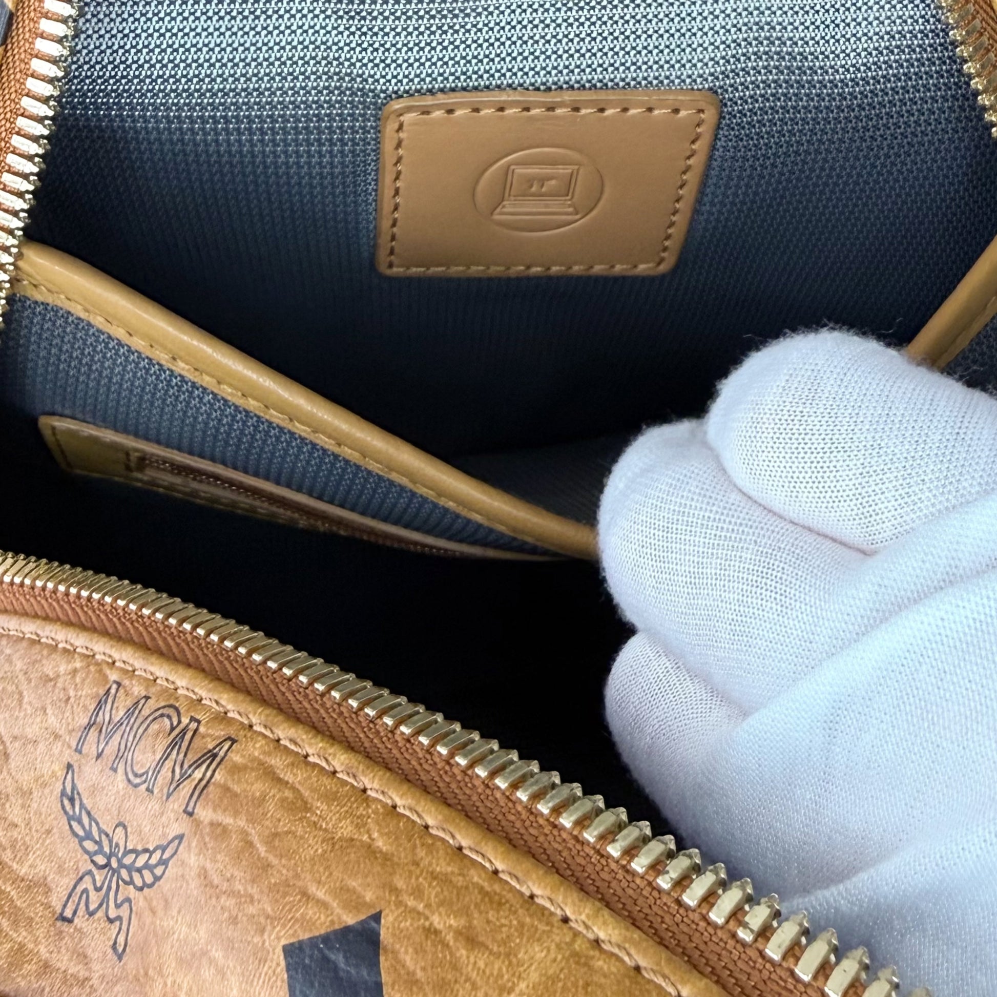Gold tone MCM logo plate and hardware