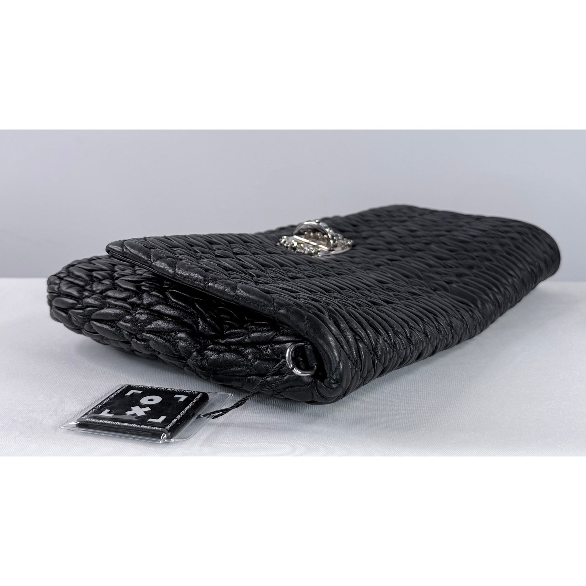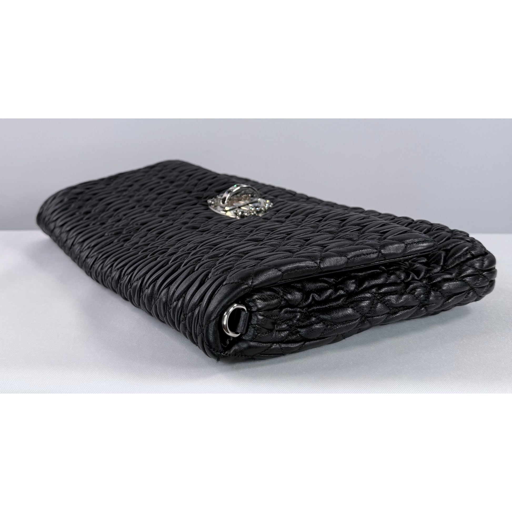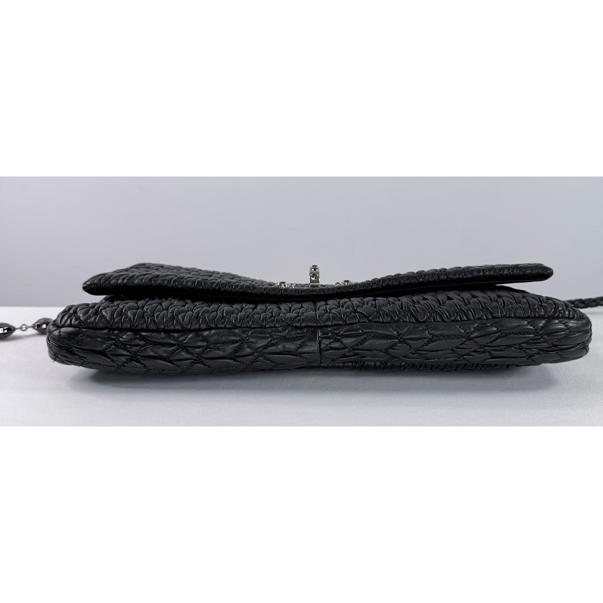 Surface: Supple cloquet quilted nappa leather with light surface wear consistent with careful handling
