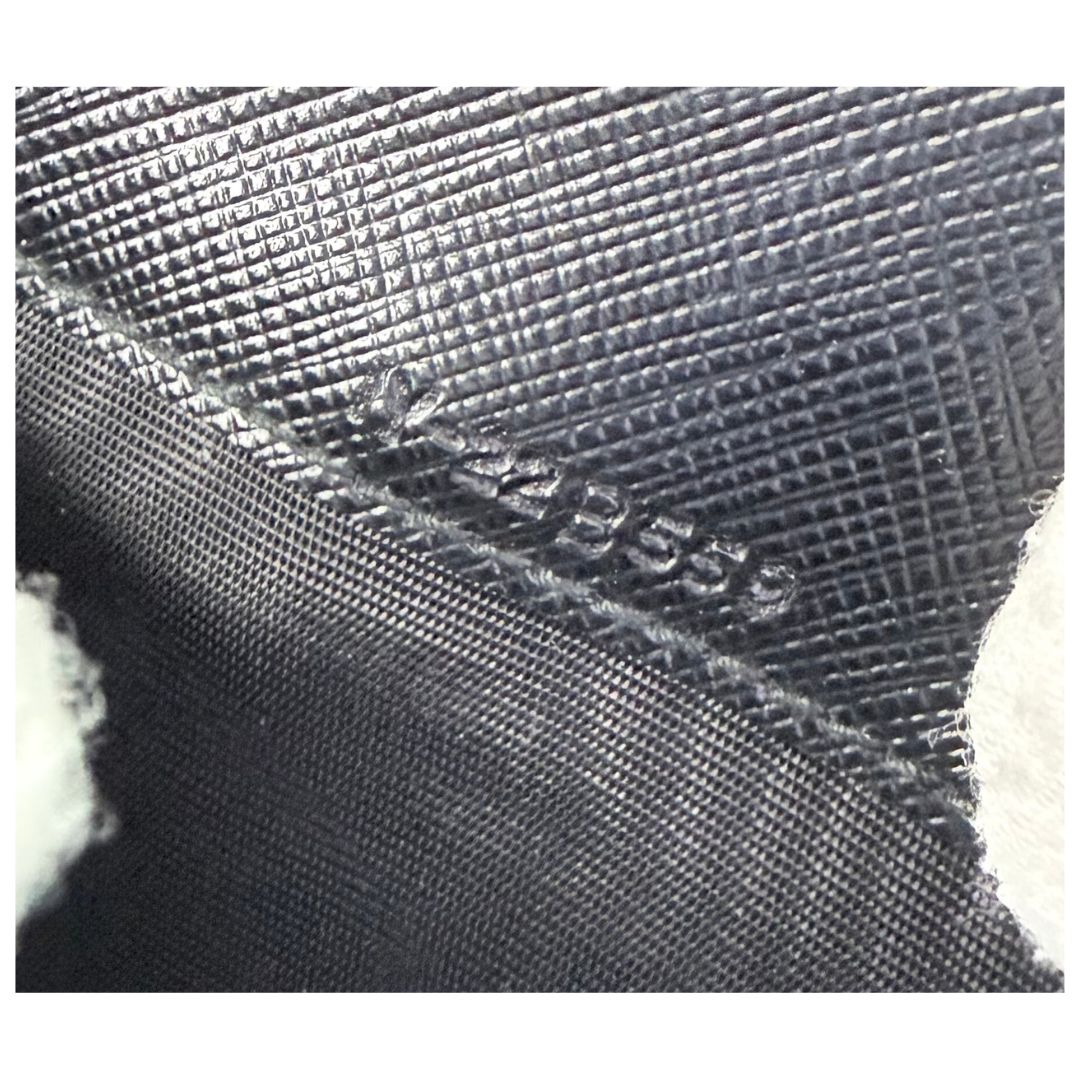 Black saffiano leather remains structured, rich in colour, and beautifully maintained. Only minimal signs of wear visible upon close inspection.
